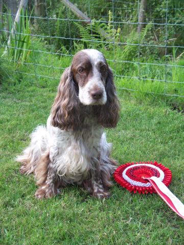 Our first cocker spaniel, an orange roan called Harry left us at the age of 11 in November 2011 after a short illness. It was a shock to us all; we thought he'd be here forever and the pack took a while to settle. He'd been the mortar that kept the bricks apart but held the house together. Whilst not a show dog, he had other qualities. He was a KCGCDS gold award winner and he could beat everyone at the waggiest tail competition. It was Harry's wonderful nature that encouraged us to have another cocker and we're so glad we did.